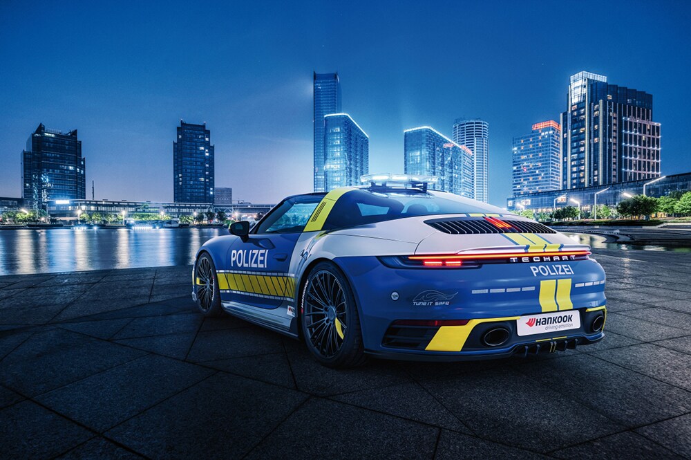 The police car optimized by TECHART for the tuning community includes a front spoiler, airframes, side skirts, aero wings and matching Hankook tires. It not only features an impressive sporty look, but can also open its roof for the first time in the history of the initiative. The TECHART GT also has strong performance characteristics and a sport spring kit lowers the vehicle level by up to 40mm.